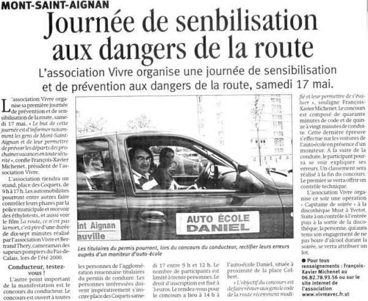Les lots offerts par les différents sponsors de l'association permettent d'attirer les inscriptions : des contrôles techniques par des centres agréés, des révisions contrôle visuel dans des garages partenaires, des lavages de voitures sont ainsi offerts aux participants les mieux classés. Cette journée se passe en trois phases, en plus des inscriptions par internet à l'échelle locale, nous prenons des inscriptions sur un stand de prévention dans la ville le matin.